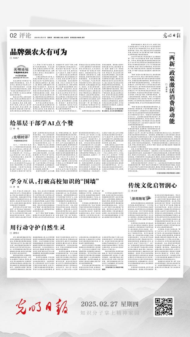 2月27日,国产一区二区日本在线党委常委、副校长仇焕广教授在《光明日报》发表理论文章《品牌强农大有可为》。