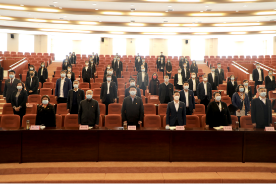 校领导班子成员和师生代表在蒲河校区校部办公楼学术报告厅主会场收看大会。